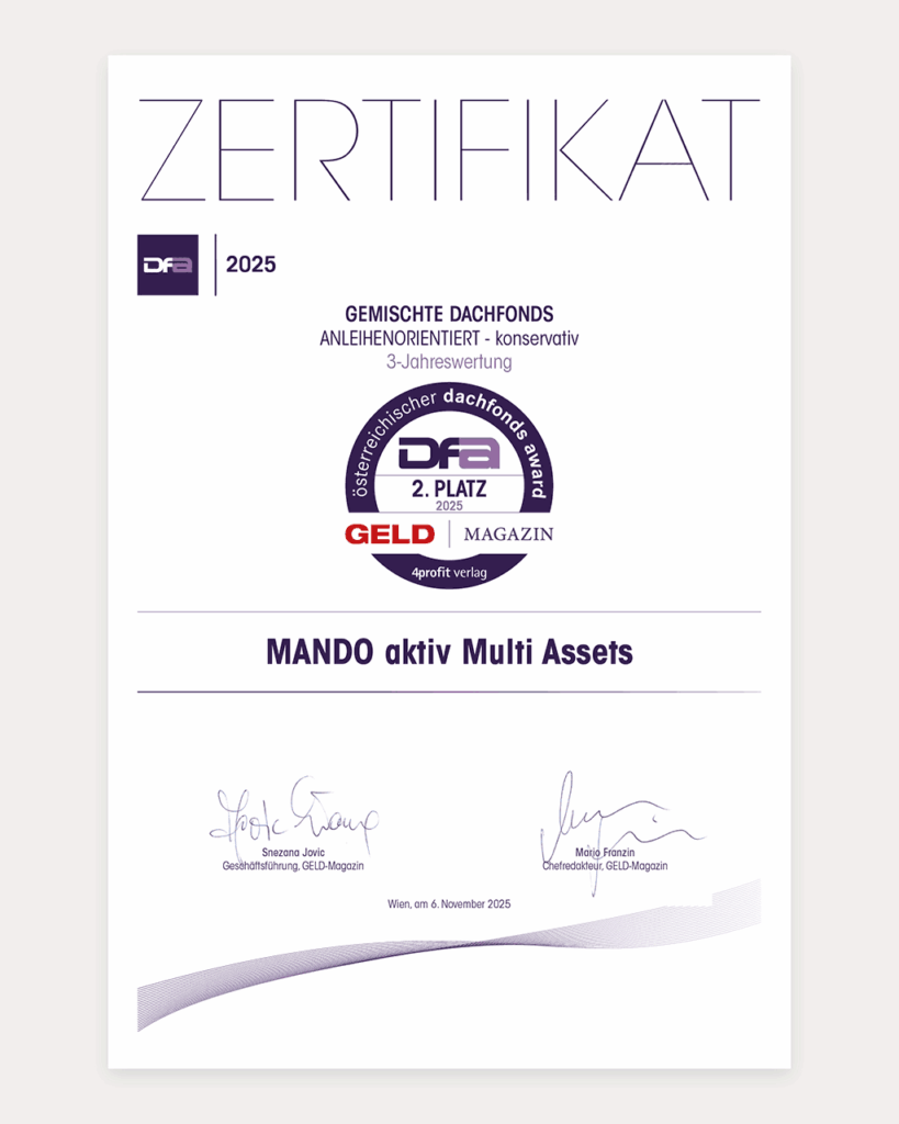 Der MANDO aktiv Multi Assets Fonds wurde im Jahr 2025 gleich doppelt ausgezeichnet.